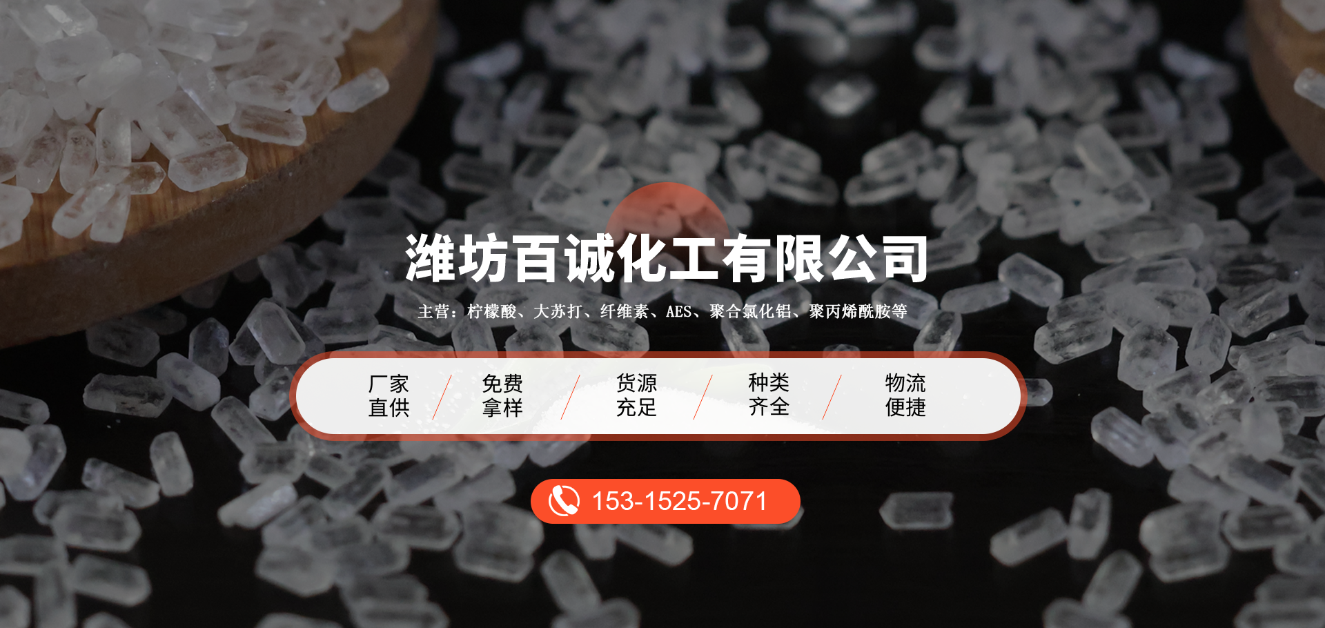 成立于山東的濰坊百誠化工有限公司多年來與國內(nèi)外多家企業(yè)工廠 形成長期合作,形成了競(jìng)爭(zhēng)力的化工原材料供應(yīng)、銷售和服務(wù) 渠道,主營:大蘇打、葡萄糖、檸檬酸、纖維素、消泡劑、AES等。